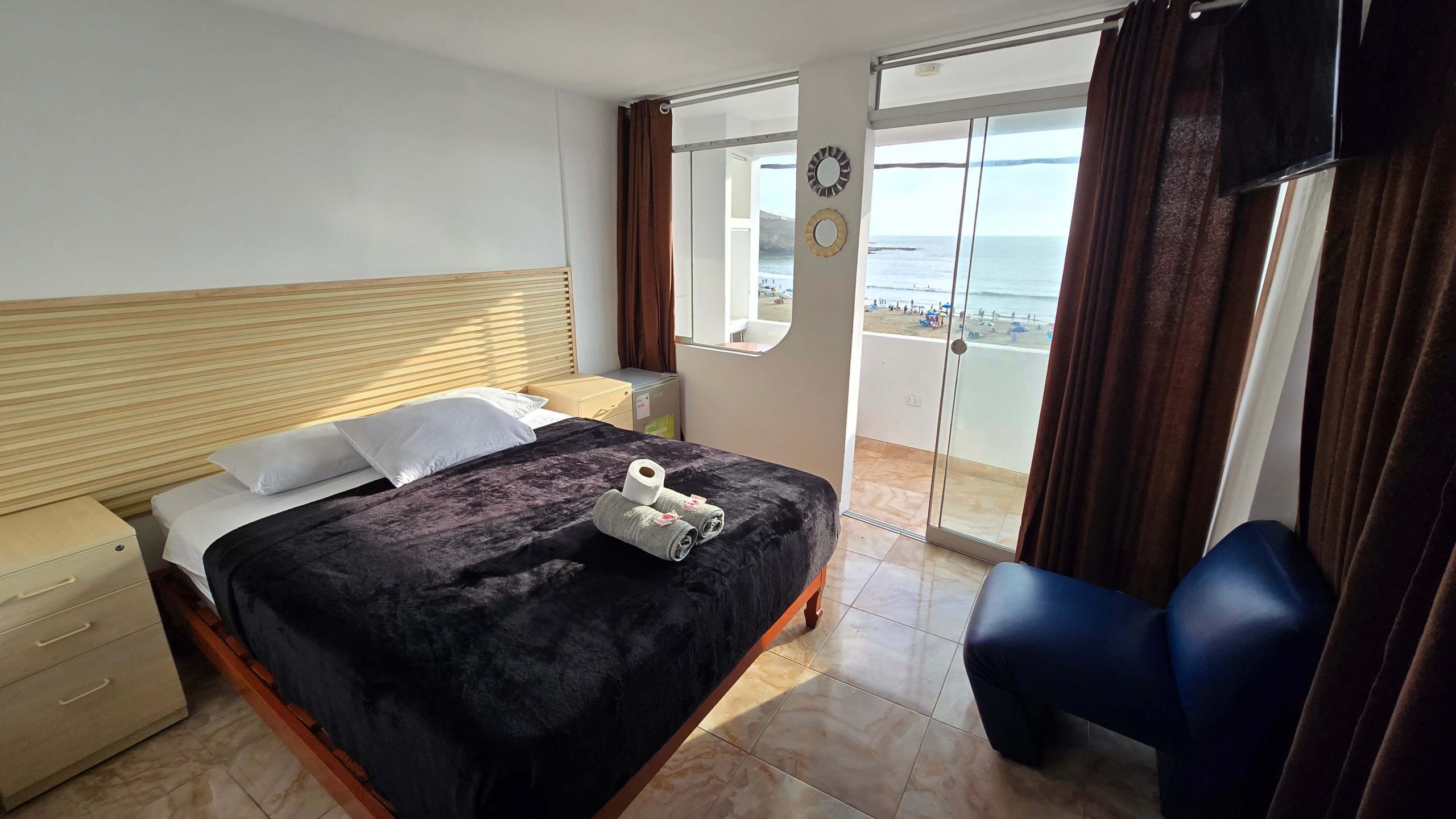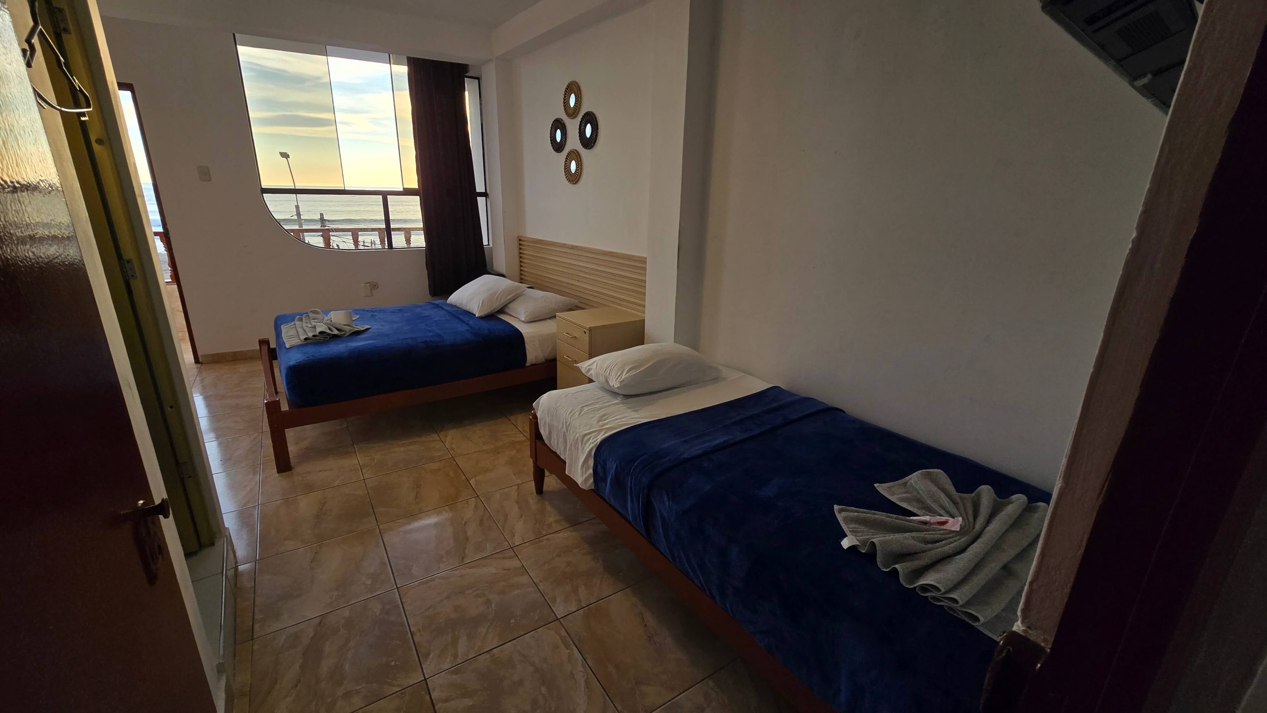 Excelente vista al mar con balcón, baño propio, internet y agua caliente las 24 horas.